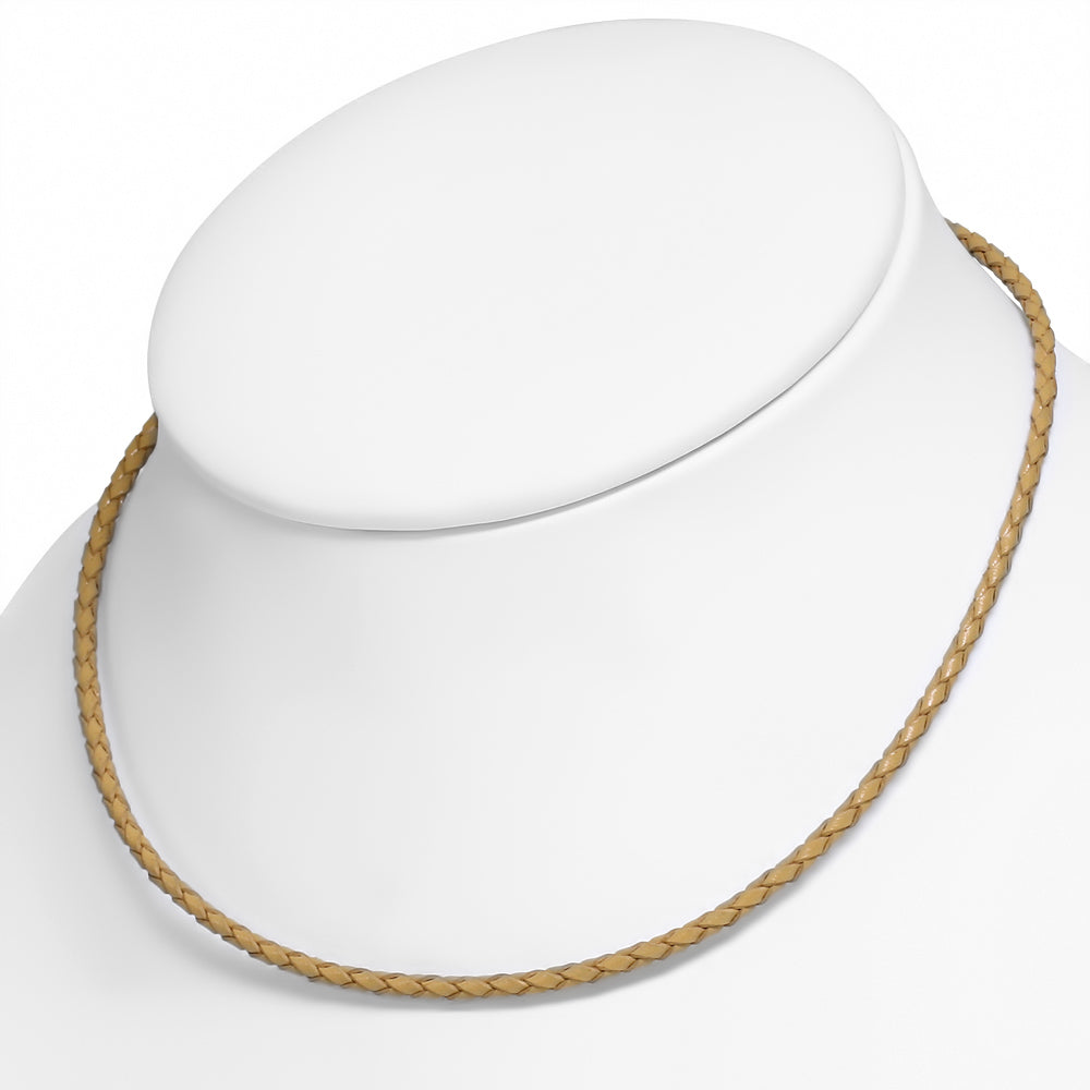 L-45cm W-3mm | Brown Braided Leather Bracelet/ Choker w/ Stainless Steel Lobster Claw Clasp Lock