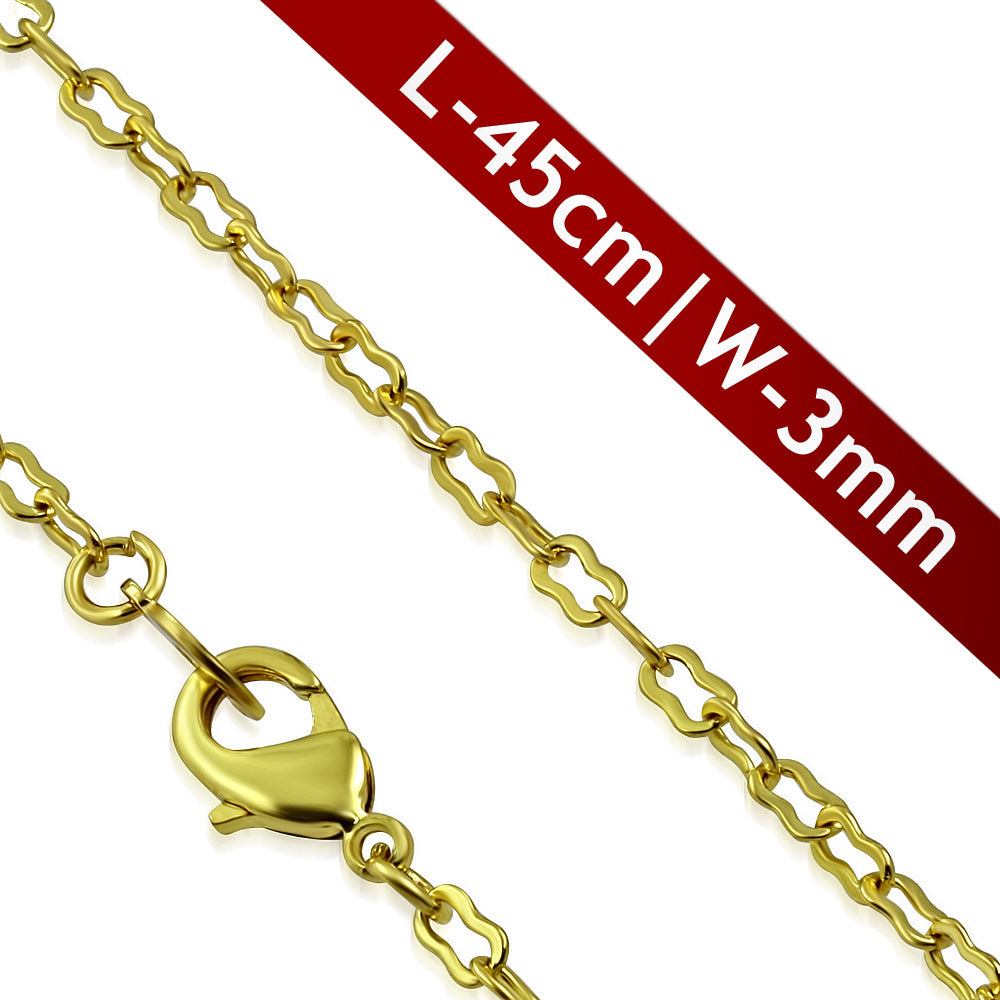 L45cm W3mm | Fashion Alloy Gold Color Plated Fancy Oval Link Chain